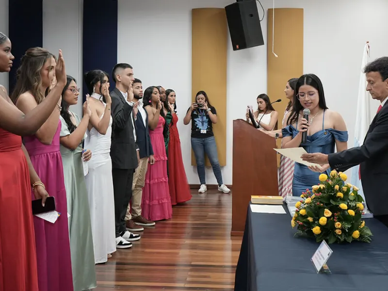 Durante la ceremonia, los graduandos proclamaron el juramento como egresados javerianos y recitaron la promesa del enfermero, en un momento solemne donde renovaron públicamente su vocación de servicio y cuidado con ética y humanidad. Además, escucharon las palabras de Marly Arboleda Salazar, quien compartió un sentido mensaje con sus nuevos colegas: